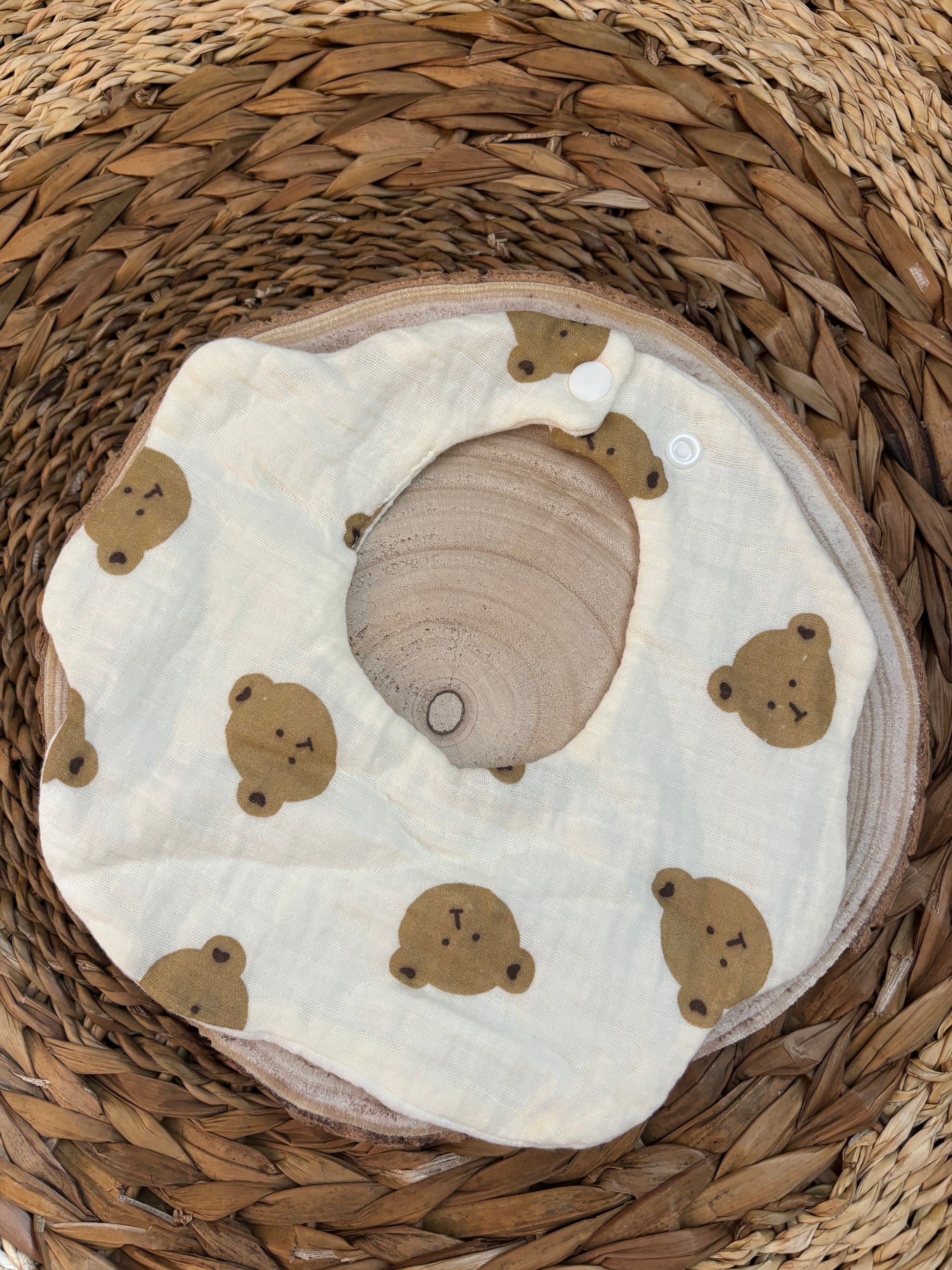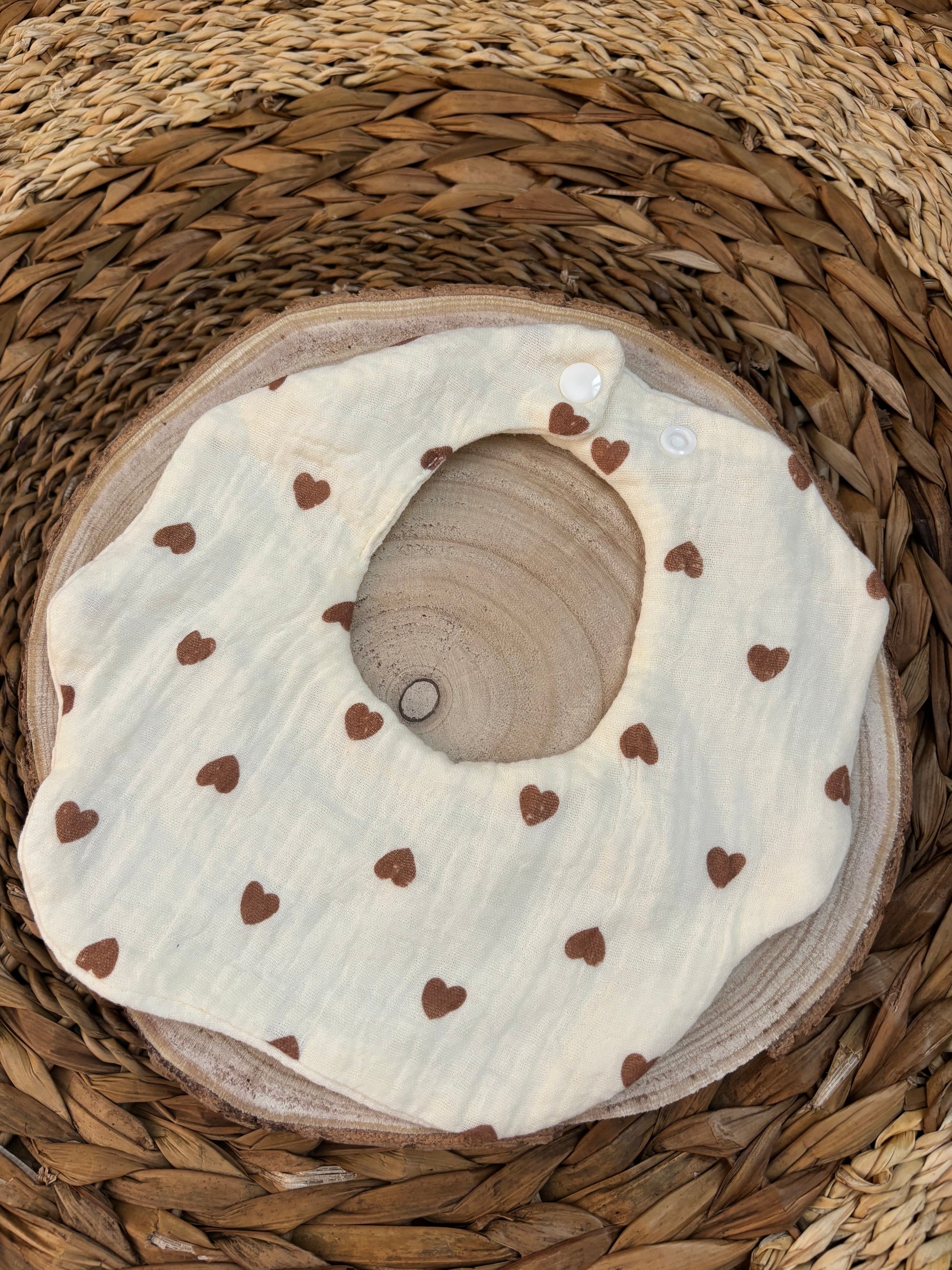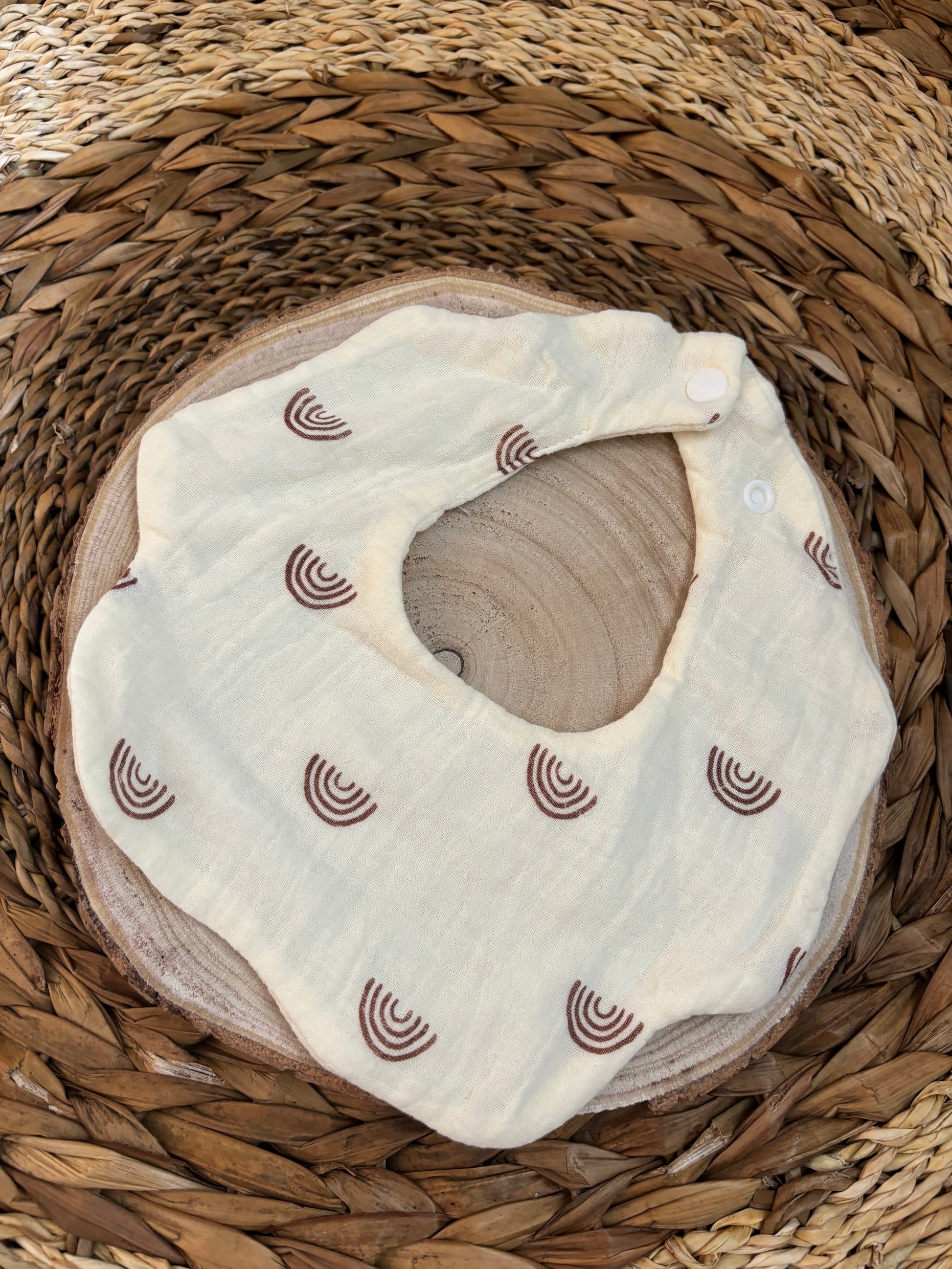 Pratiques et tout doux, ces petits bavoirs unisexes accompagneront bébé au quotidien. Le lot comprend 3 modèles assortis : un bavoir à cœurs bruns, un bavoir ourson et un bavoir arc-en-ciel bohème. Parfaits pour protéger les vêtements de bébé avec style et douceur.
