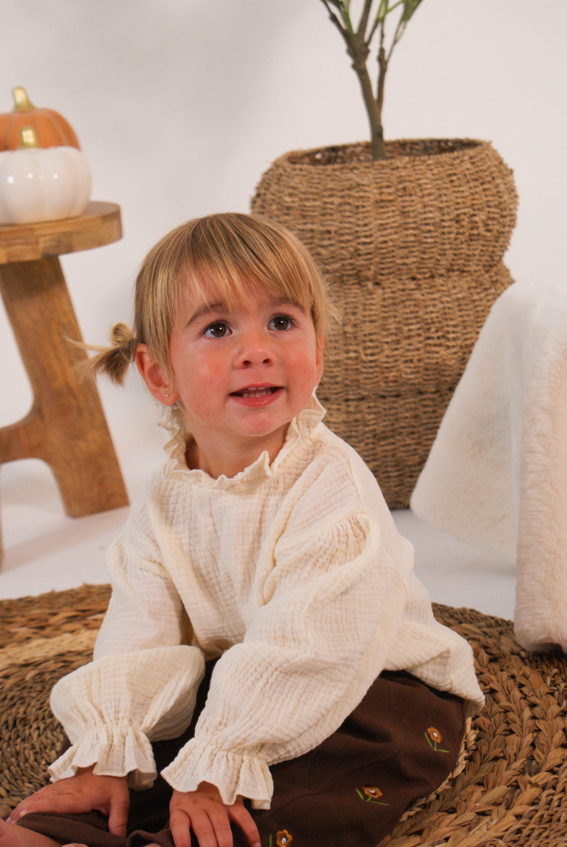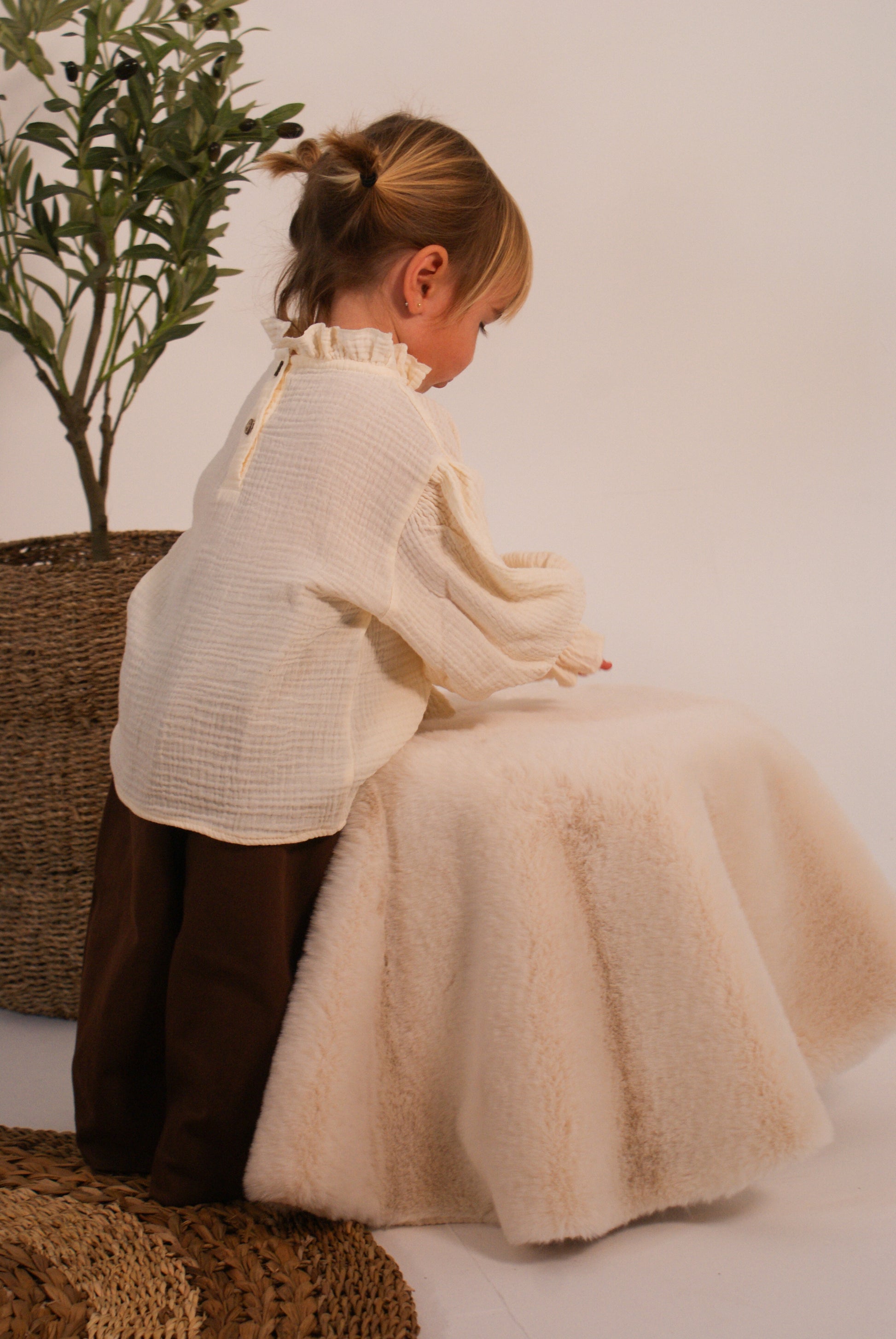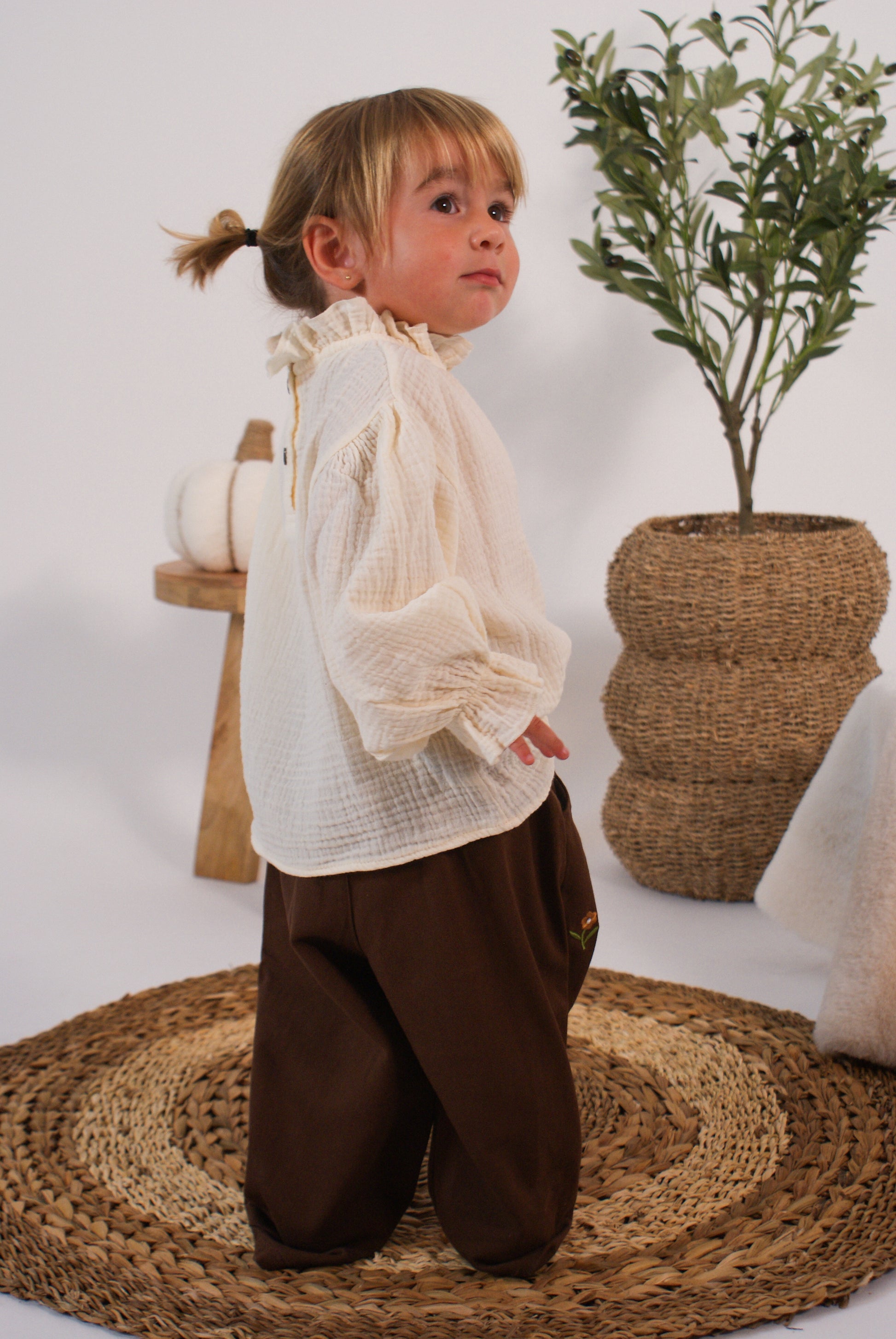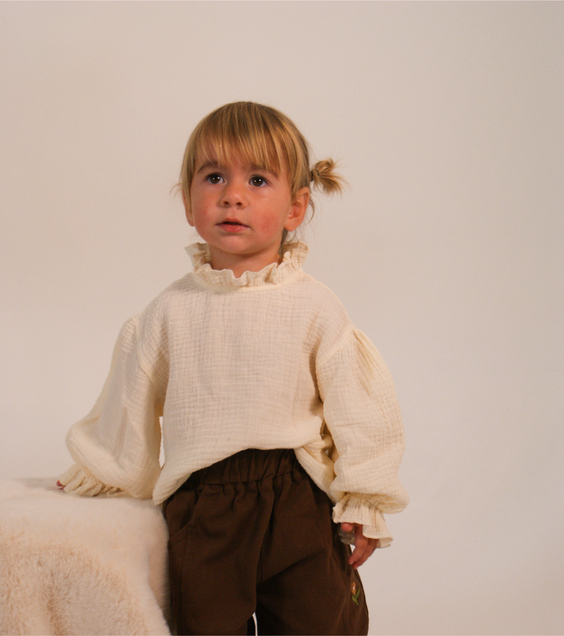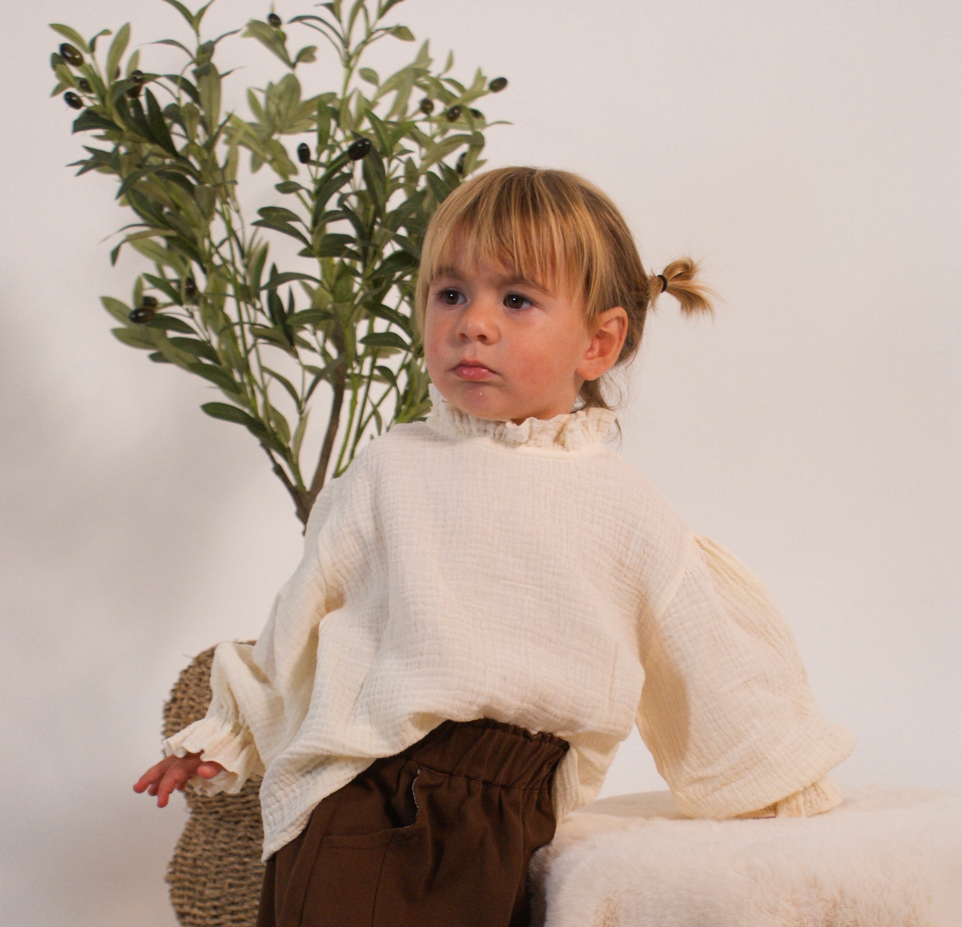 Craquez pour cette jolie blouse en coton gaufré, à la fois légère et confortable. Avec son col volanté délicat, ses manches bouffantes resserrées aux poignets et ses jolis boutons au dos, elle apportera une touche élégante et rétro à toutes les tenues de votre enfant. Parfaite pour les beaux jours ou pour superposer en mi-saison.