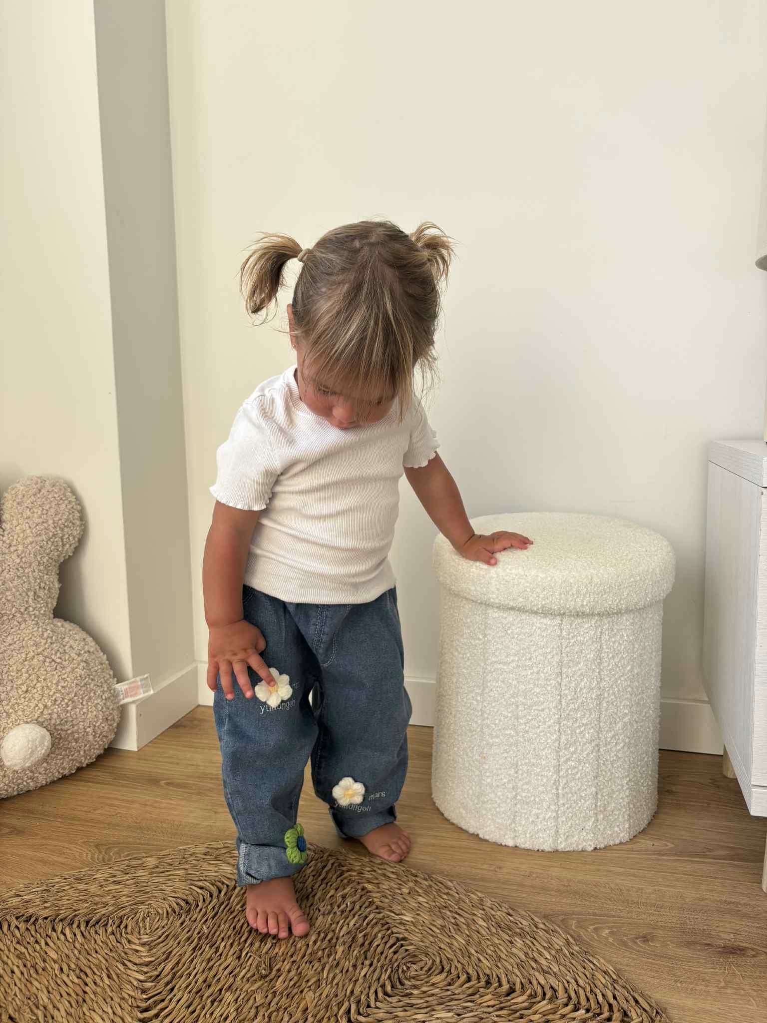 Ce joli jean au style légèrement mom allie confort et originalité. Son atout charme ? De délicates petites fleurs en relief, dont une marguerite et une fleur verte, apportent une touche poétique et tendance. Facile à assortir, il deviendra vite un incontournable du dressing des petites filles stylées !