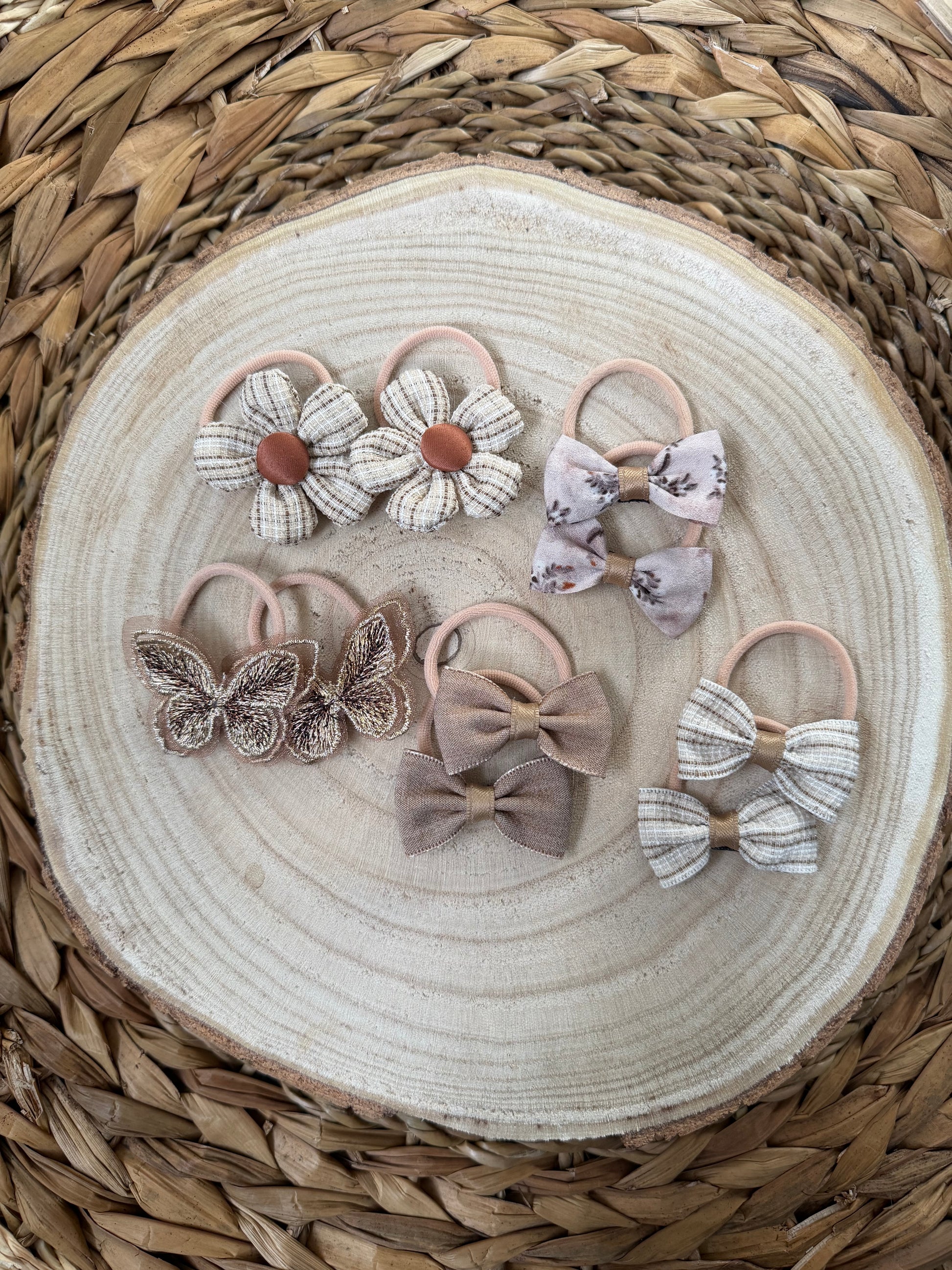 Les petits détails qui font toute la différence. Ces élastiques d’automne sont ornés de nœuds, papillon et de fleurs délicates, dans des tons chauds et naturels qui s’accordent avec toutes les tenues. Pratiques et adorables, ils ajoutent une touche de charme et de douceur à chaque coiffure — que ce soit pour une journée d’école, une balade ou une fête en famille.