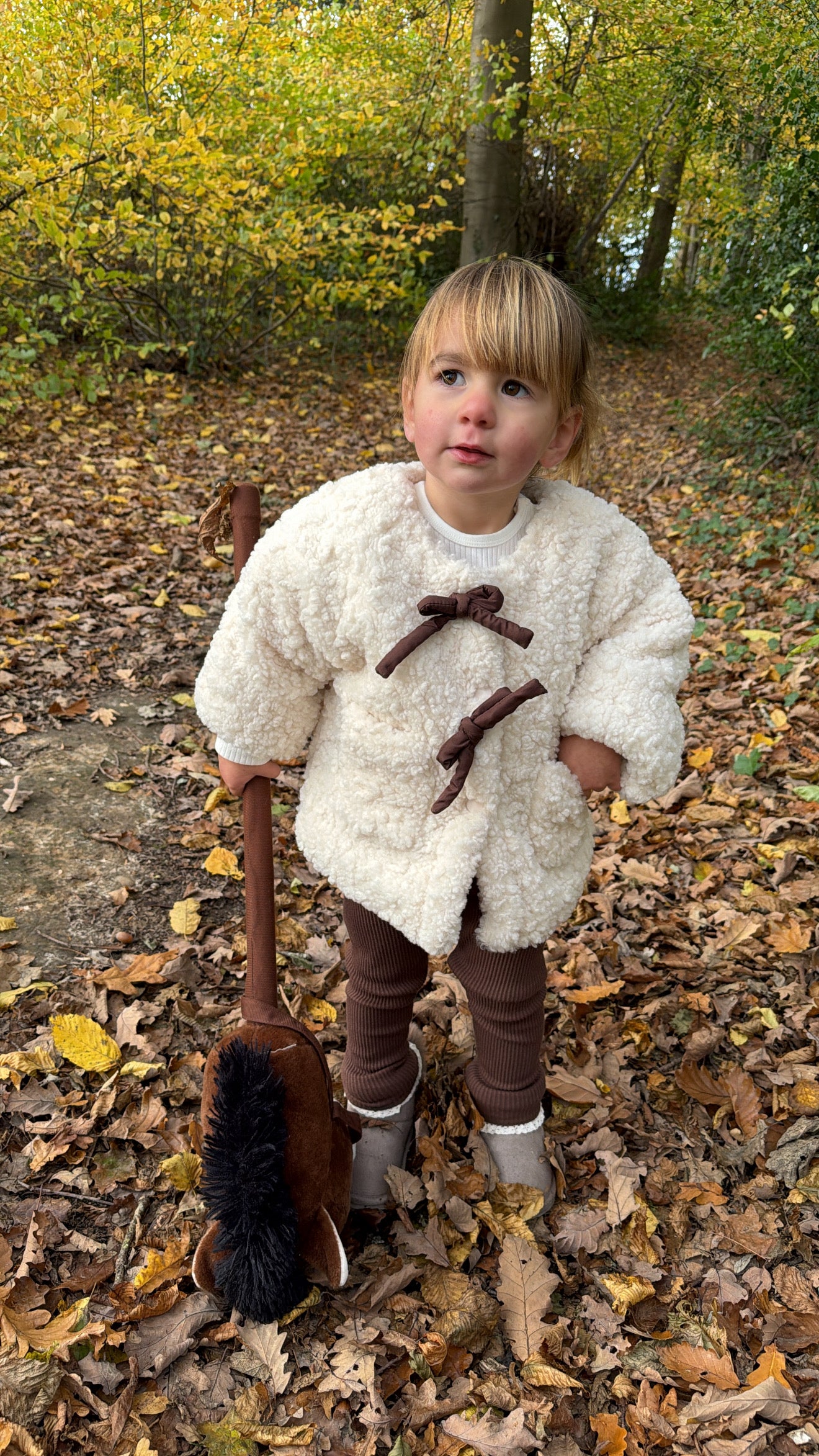 Cette veste en matière moutonnée ultra douce enveloppe les mini aventurières de chaleur et de confort. Ses gros nœuds contrastés apportent une touche rétro irrésistible, tandis que sa coupe légèrement oversize permet de bouger librement. Parfaite pour l’automne comme pour l’hiver, elle se marie à merveille avec un legging côtelé ou un petit jean